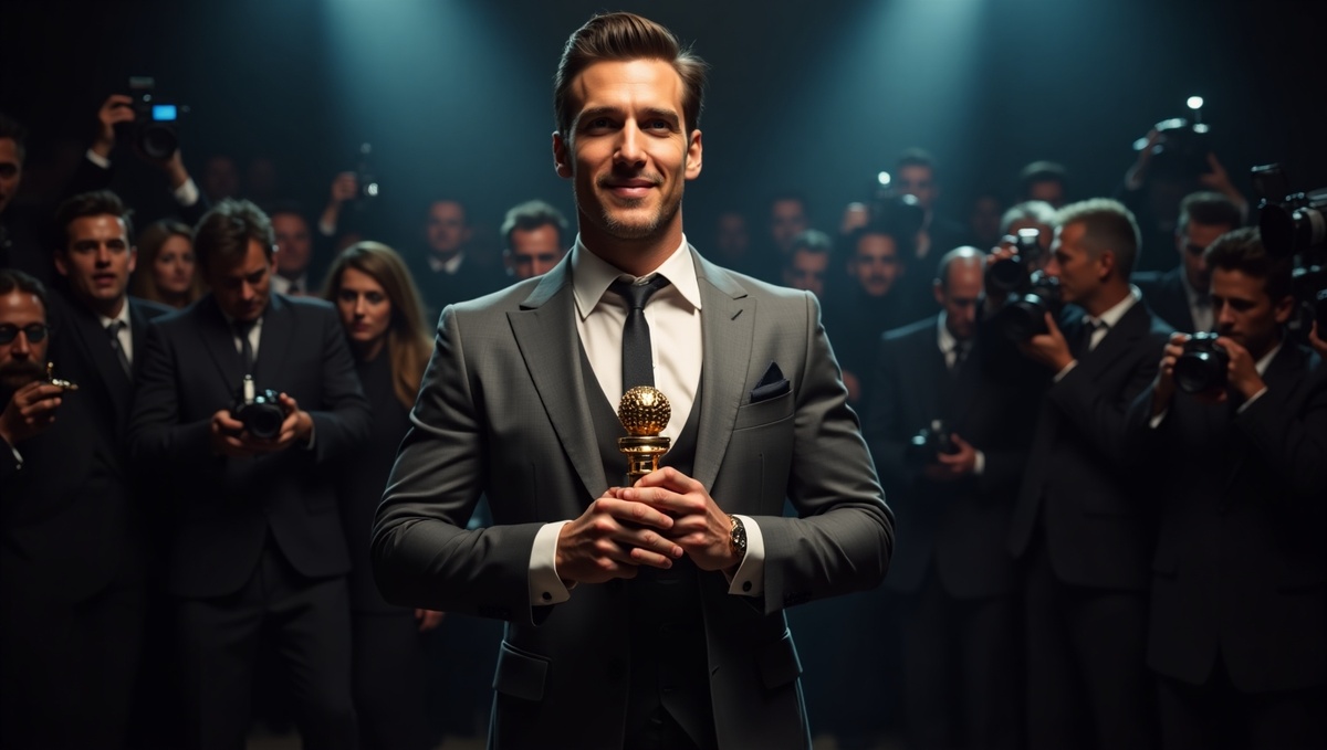 Лучи прожекторов слепили глаза, как сотни маленьких солнц. Тысячи голосов сливались в единую волну восторга, а он стоял на сцене в самом её центре, держа в руках тяжёлую статуэтку победителя. Все камеры были направлены на него. Это тот момент, о котором он мечтал всю жизнь.