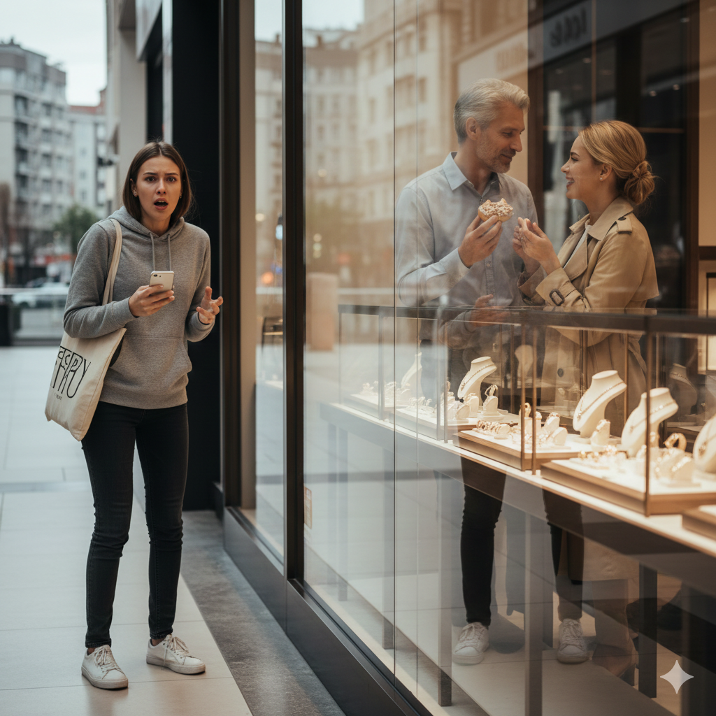 Катя решила пройтись до метро через торговый центр — надо было как-то успокоиться. Прошла мимо кофейни, мимо магазина электроники и замерла у окна ювелирного бутика, разглядывая кольца. И тут в отражении стекла она увидела своего отца.