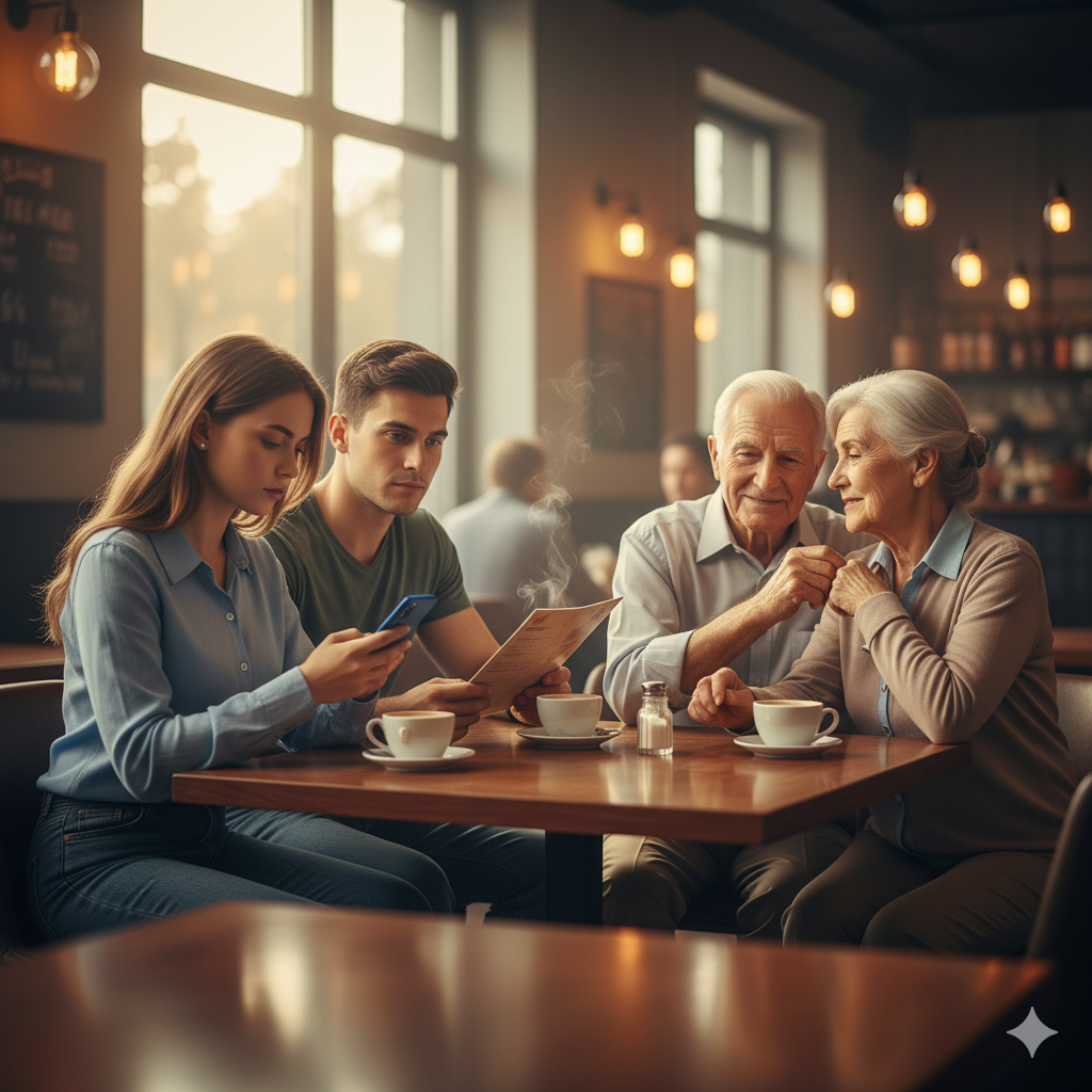 Смотрю на молодую пару в кафе. Она листает телефон, он изучает меню. Между ними – пустота, хотя сидят рядом.