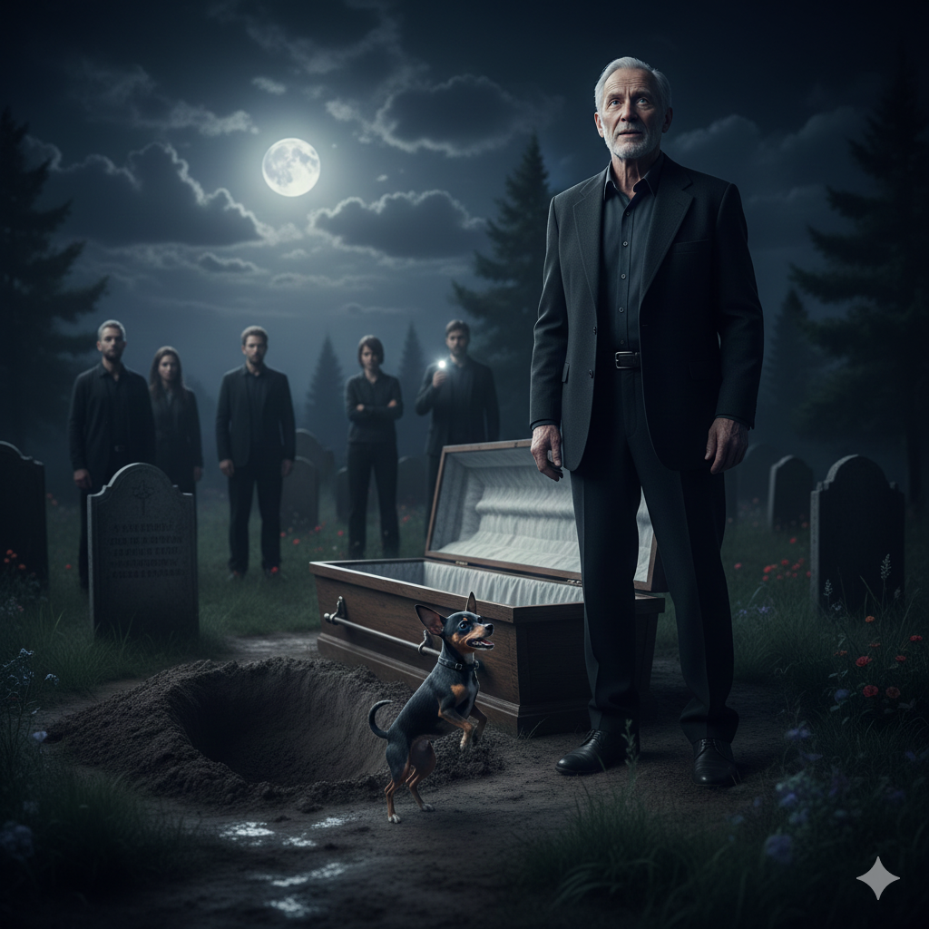 — О, господи, — сказала она дочерям и их мужьям. — Я не могу найти собаку. Она всё время пыталась запрыгнуть в гроб. Не может же быть?…