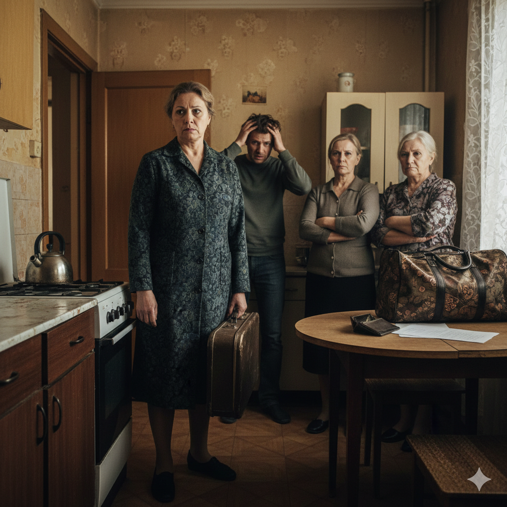 Свекровь стояла, открыв рот. Зинаида дёргала её за рукав, что-то шептала. На лестничной площадке высунулась соседка, жадно впитывая скандал.