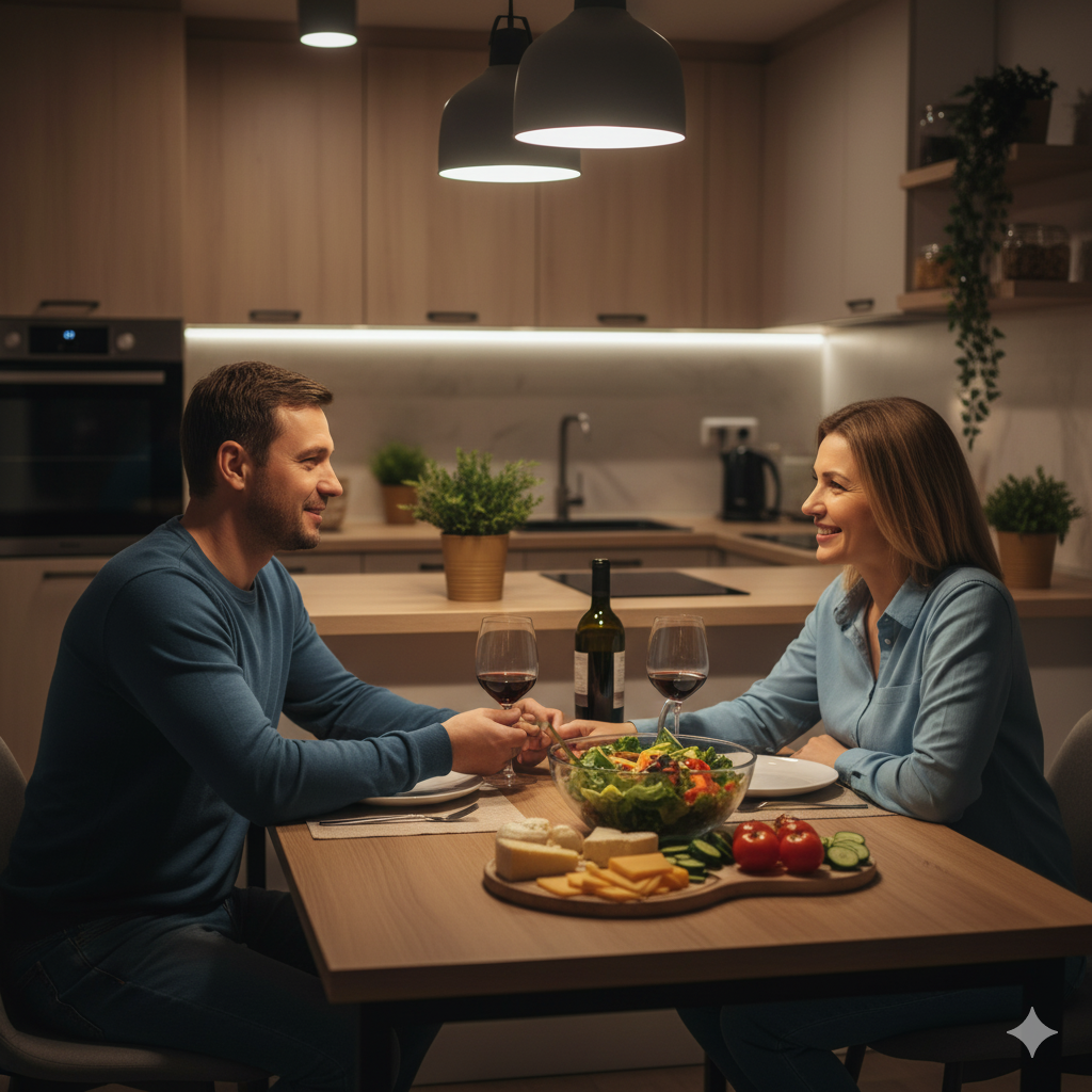 Денис хлопотал на кухне. Открыв дверь, Дана сразу почувствовала запах жареного мяса. На столе стояла бутылка их любимого вина, салат из свежих помидор и огурцов, сыр…