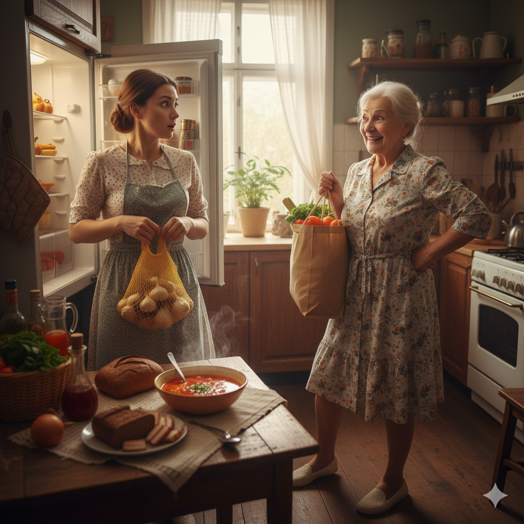 В квартиру я ворвалась, как метеор. Зинаида Ивановна сидела на кухне в моем фартуке, и, покачивая ногой, смотрела телевизор. Я молча открыла холодильник, и начала складывать в пакет весь чеснок и лук, который она привезла.