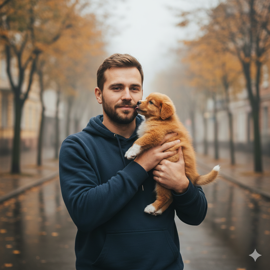 И тогда парень остановился, взял щенка в свои большие руки и прижал к себе: