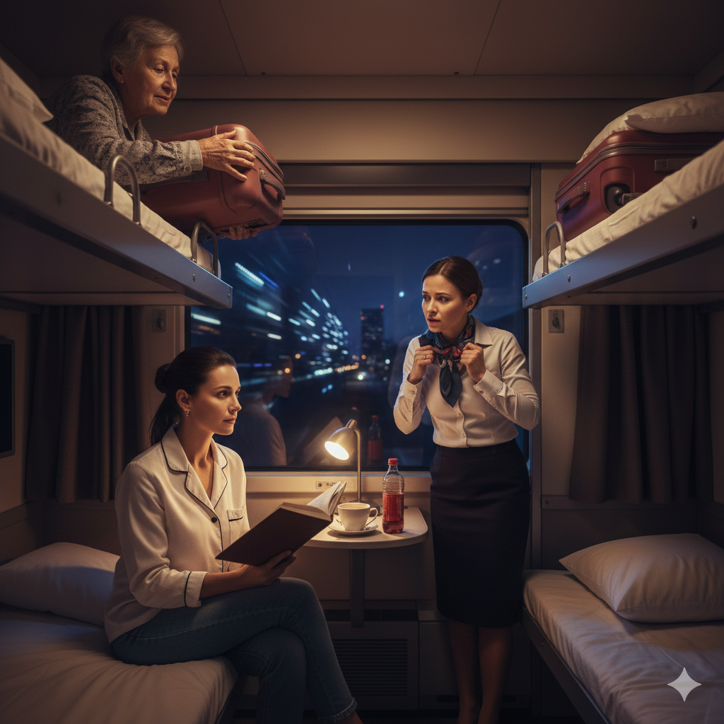 — Найдите другого пассажира с верхней полкой, который согласится поменяться, — предложила Ольга. — Или предложите той даме доплатить кому-то за обмен. Вариантов много.
