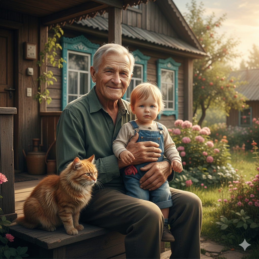 Глаза Ивана Петровича блестели от радости, наконец-то он больше не будет одинок, с ним будут пусть и не родные, но всё же его дети. Осталось только отдать корову и курочек соседке, дождаться арендатора, которому он сдал домик, и всё, можно уезжать. Он ещё раз оглянулся на свой домик, окинул взглядом сад, взял кота подмышку и сел в автомобиль. Вот и всё, начинается новая жизнь. Жизнь, в которой есть место и время и для такого, как он деревенского старика. Правду говорят, чужие лучше, чем свои, сейчас он в этом убедился.