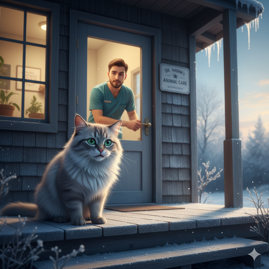 Вадим – молодой врач-ветеринар, по обыкновению подошел к клинике почти за час до открытия. Надо подготовиться, заранее ознакомиться со списком пациентов, записанных на прием.