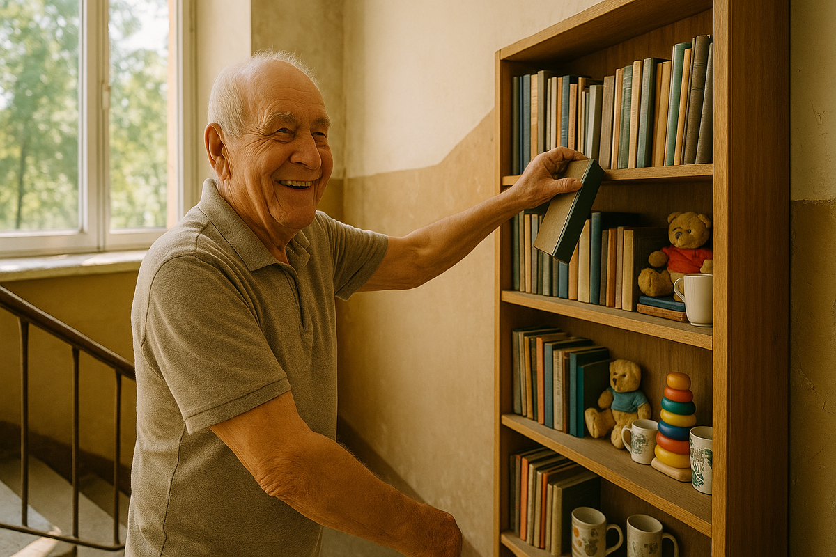 Легкий шкафчик он без труда перетащил на площадку между первым и вторым этажом. Потом отправился домой, придирчиво пересмотрел те книги, которые сложил в ящики — их оставлять он не планировал. Кстати, и Достоевский вон в двух экземплярах, почему бы один не поставить в шкаф? Книг набралось прилично. Кирилл Валерьянович перенес их в несколько ходок, аккуратно расставил на полках. Рядом приклеил написанное от руки объявление: “Книжный дом — буккроссинг. Правила простые: берёшь — читай, прочитал — возвращай. А хочешь — добавь что-нибудь интересное!”