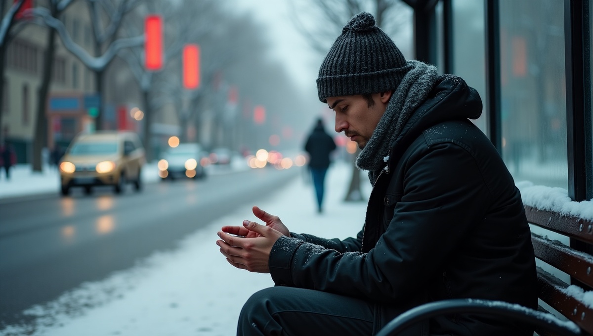 Николай сидел на скамейке у автобусной остановки, растирая замёрзшие руки. Декабрьский ветер пронизывал до костей, в воздухе пахло снегом, а редкие прохожие спешили домой, кутаясь в шарфы. Он смотрел, как пар изо рта растворяется в воздухе, и думал: «Как же всё это глупо».