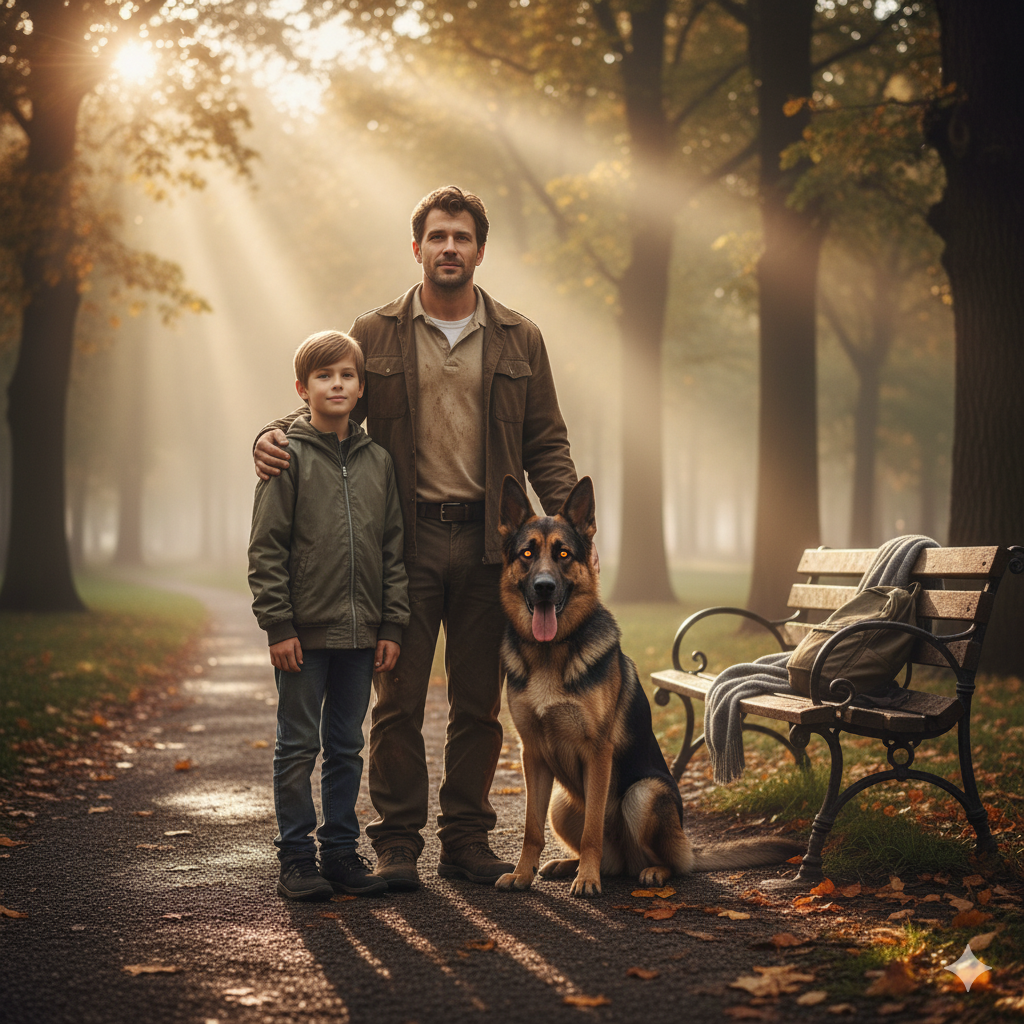 Мужчина подмигнул их папе и пошёл по дорожке парка. Овчарка шла рядом с ним, время от времени оглядываясь назад.
