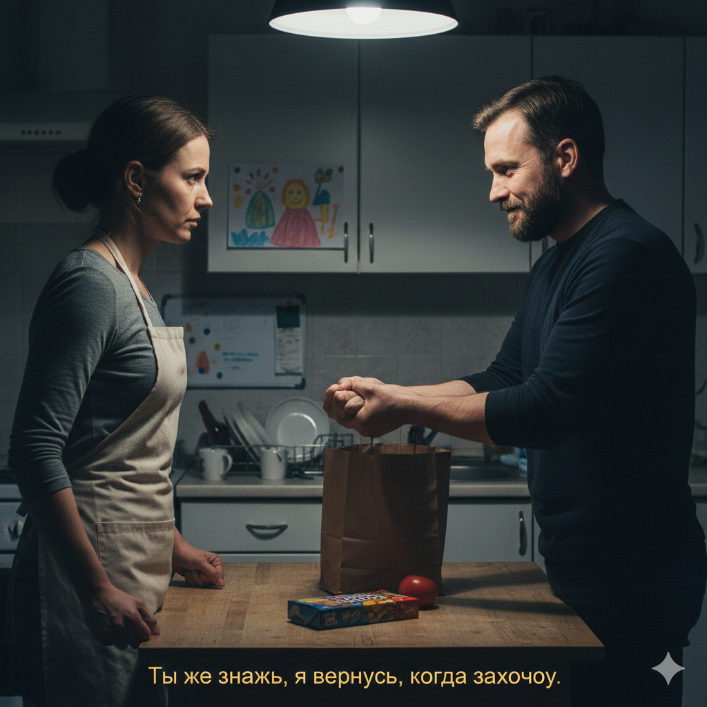 — Опять драматизируешь, — он повернулся, и в его глазах вспыхнуло что-то злое, знакомое. — Думаешь, я не вижу, как ты мучаешься? Ждёшь, когда я вернусь. Признайся, тебе же скучно одной.