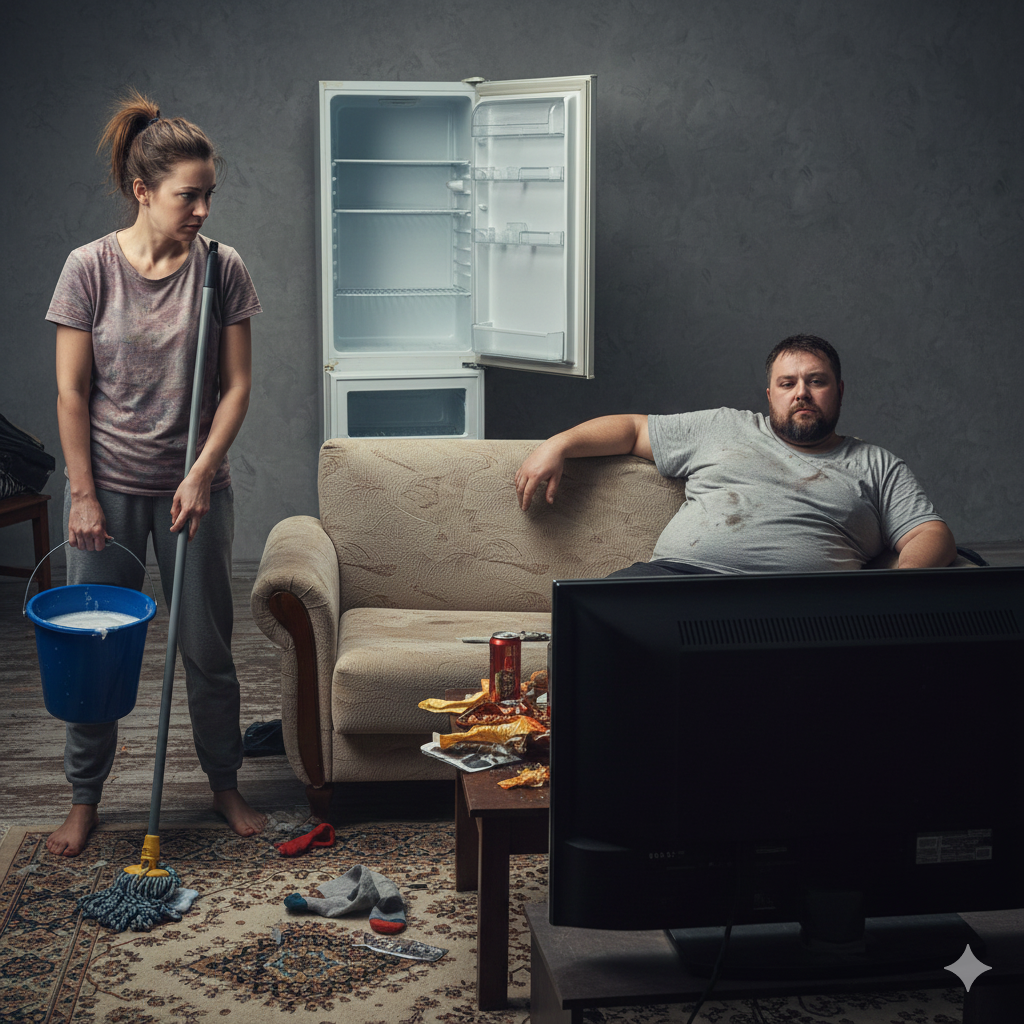 — Твоя жена? Серьезно? — рассмеялась я. — А ты кто? Муж? Муж — это тот, кто работает, помогает по дому, интересуется женой, планирует совместное будущее. А ты кто? Ты — сто двадцать килограммов биомассы, которая ест, спит и смотрит телевизор!