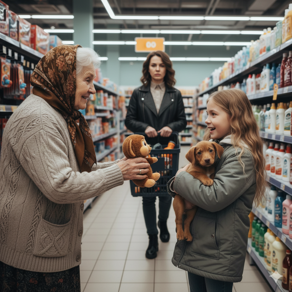 — Извините, я сейчас всё объясню, — засуетилась Елена Павловна. – Понимаете, я просто стояла рядом, когда ваша дочь игрушку для своего щенка выбирала и мне захотелось помочь вам. Я понимаю, что у вас мало денег, и…