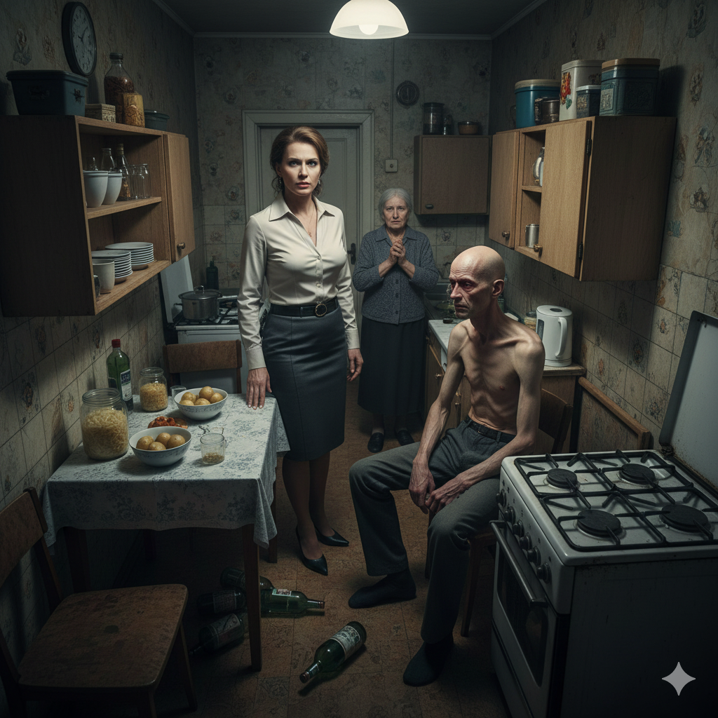 В доме свекрови пахло варёной картошкой и чем-то ещё. Только потом Анна поняла, что это был запах квашеной капусты. На столе стоял чайник, ваза с печеньем, сахар. Тут же грязная тарелка из-под супа и закопченая кастрюля. За столом сидел мужчина, совсем не похожий на прежнего красавца и активиста. Лысый, тощий, с обрюзгшим лицом и красными глазами.