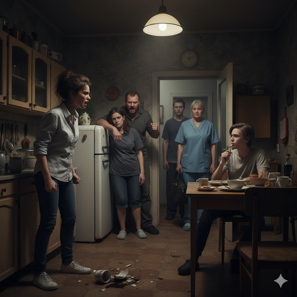 — Молчать, — отрезала она, теперь не повышая голоса. Она обвела взглядом всех: плачущую Иру, багрового от гнева Андрея, испуганную Лену, Стёпку, расстроенного Диму. — Позорище, честное слово.