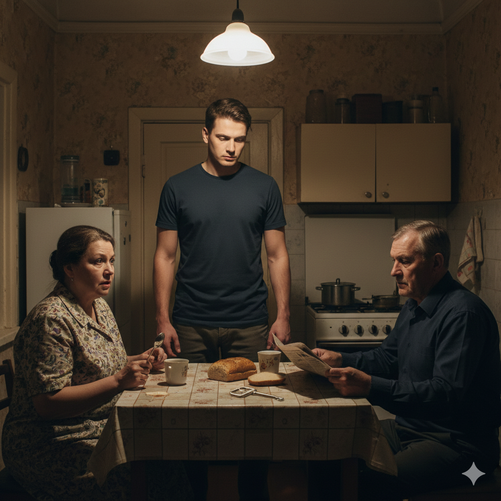 Его отец, Николай Иванович, медленно опустил газету. Его лицо, обычно невозмутимое, стало каменным.