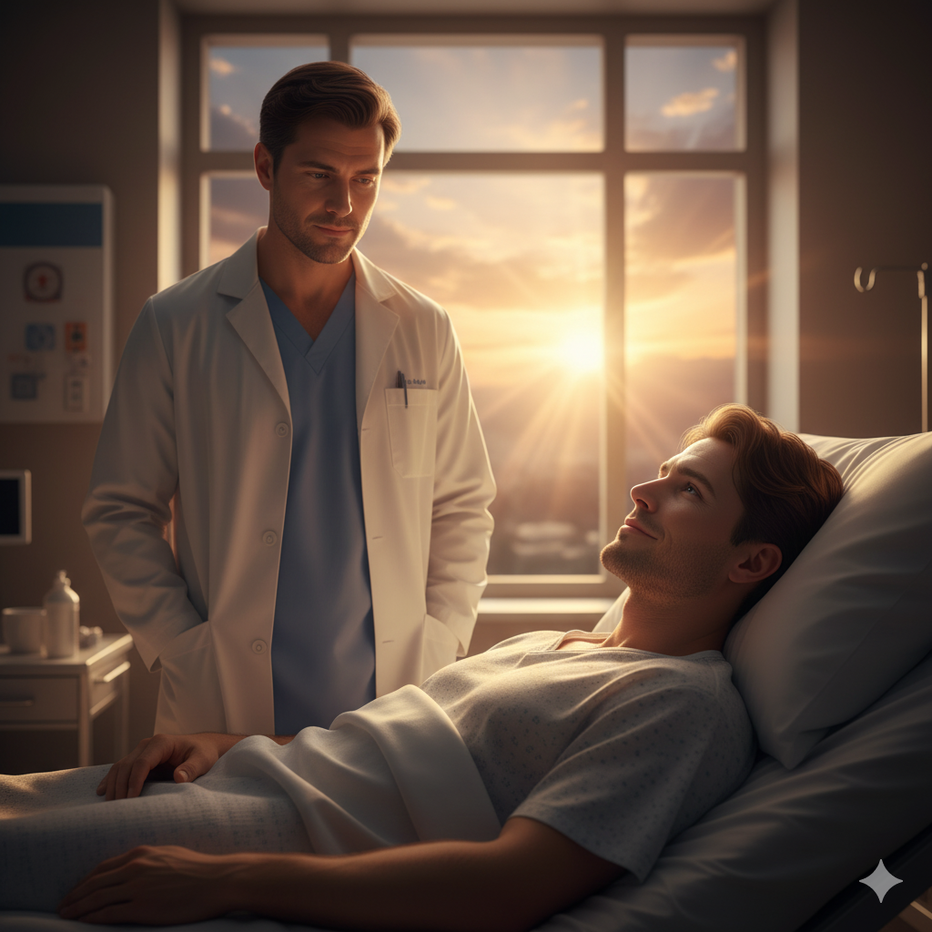 К его больничной кровати подошёл сорокалетний хирург, который пытался изо всех сил казаться спокойным.