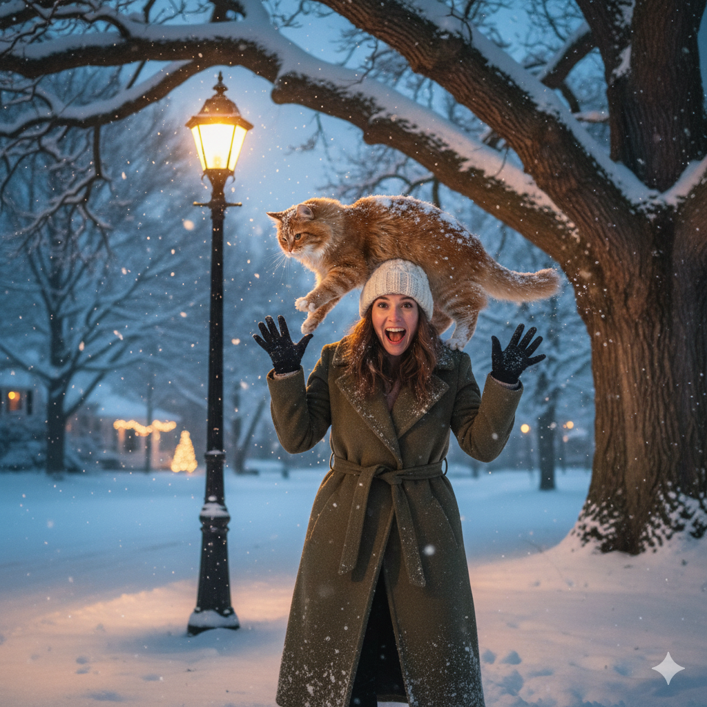 И сняла шапку с головы вместе с котом.