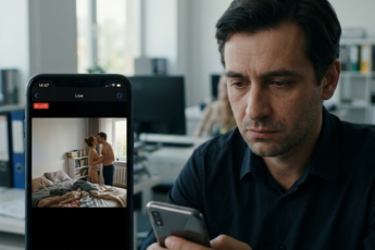 Камера включилась в 14:47. Я смотрел прямую трансляцию со своего телефона. С работы. На экране — наша спальня.