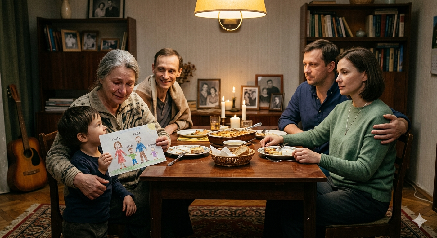 Мать сидела в углу, тихая, почти незаметная. Митя принёс ей свой новый рисунок – он, Оля с Андреем, Гоша и даже бабушку он нарисовал, правда, в самом уголке. Мать взяла его и вдруг расплакалась. Оля хотела подойти, но замерла. Андрей обнял её за плечи.