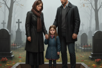 Хмурое октябрьское утро на городском кладбище. Мать рыдает над могилой сына. Рядом стоят муж Илья и десятилетняя