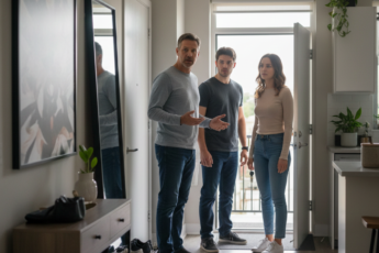 Максим стоял в прихожей перед зеркалом и репетировал серьёзный разговор с женой. Рядом с ним стоял его