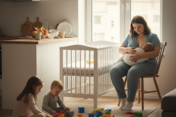 Квартира в спальном районе. Возле детской кроватки сидит Нина и кормит грудью дочь. Она никогда не была