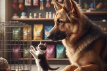 А потом, однажды… Котёнок исчез, и овчарка тревожно бегала по магазину, вынюхивая его запах.