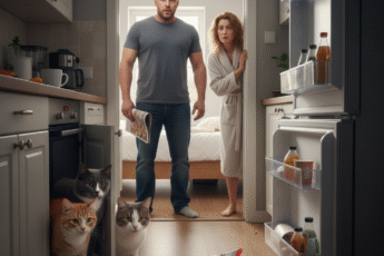 Увидев дядек с палками, несчастные воришки испуганно пискнули и скрылись под шкафом. Откуда и понеслись