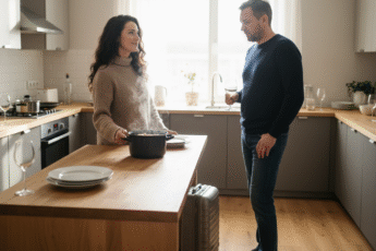 После тренировки, Вика спешила домой, обещала мужу сварить уху. Зайдя в квартиру, она увидела, как её