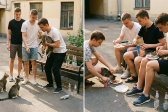 Один из прохожих не захотел обходить маму-кошку с котёнком и просто отпихнул её в сторону ногой.