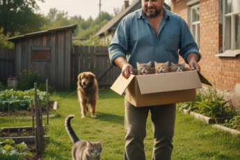Мамки котят дома не было. Недолго думая, Коля ухватил пушистиков в охапку вместе с тряпьём и перенёс