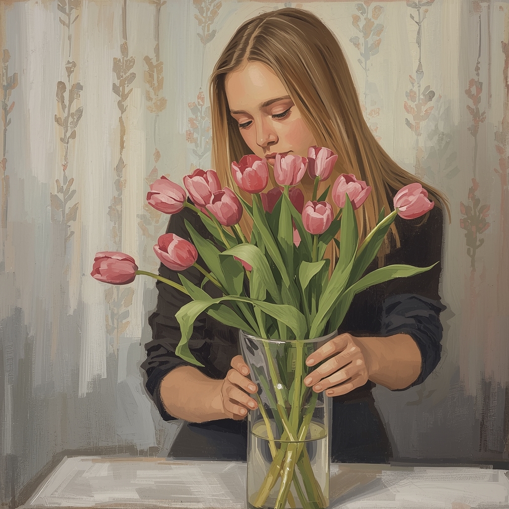 Аня посмотрела на белые хризантемы, которые хотела взять, но заметила, что листья у них уже поникшие, и сами цветы были не первой свежести.