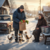 Вера ей пирожок подаёт, та схватила и выкинула подальше, потом развернулась и пошла, посмотрев грозно на Веру.