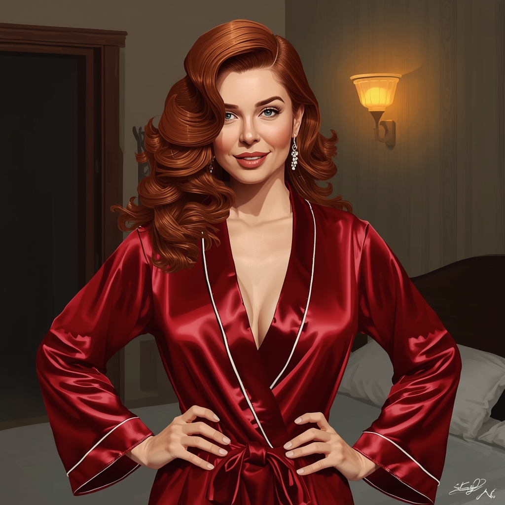 Вдруг из ванной комнаты вышла женщина. В красном пеньюаре, на ногах туфли на высоченных каблуках. Длинные рыжие волосы, красная помада на губах. И щёки нарумянила как матрёшка. Рыжая бестия приближалась к Геннадию. Он начал пятиться и уселся на широкую кровать, застеленную пледом. Ноги аж ватными стали.