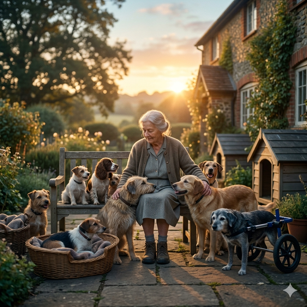 «Я была женщиной из Йоркшира, жила на юге. Мне было довольно одиноко. Живя на главной дороге, я видела так много собак… Я просто посвятила им свою жизнь. У меня были собаки всех пород и размеров. Многих я пристроила, некоторые разбросаны по всей Англии. Понимаете, я верю, что собаки — они божьи. И я не могу их оставить».