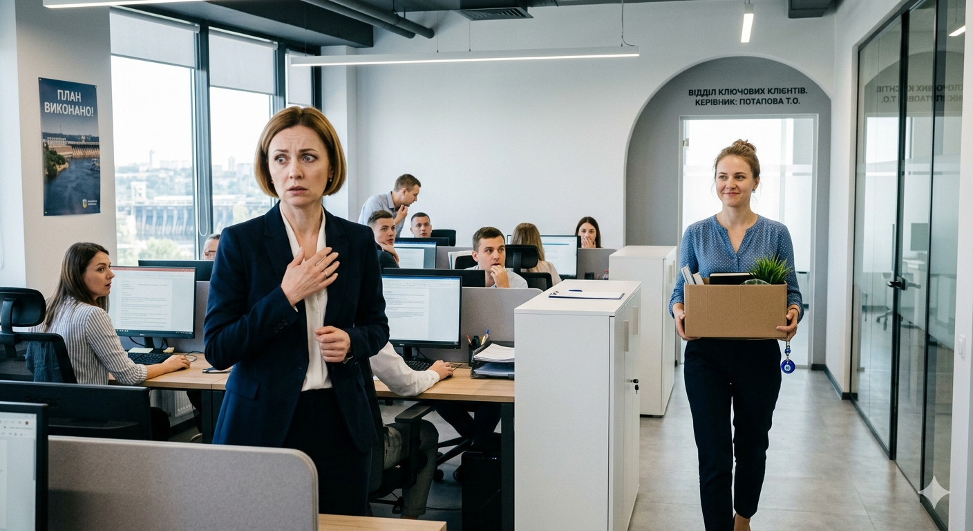 Сзади раздался звук, похожий на всхлип загнанного зверя. Елена Сергеевна стояла посреди отдела и смотрела, как рушится её маленькое королевство.