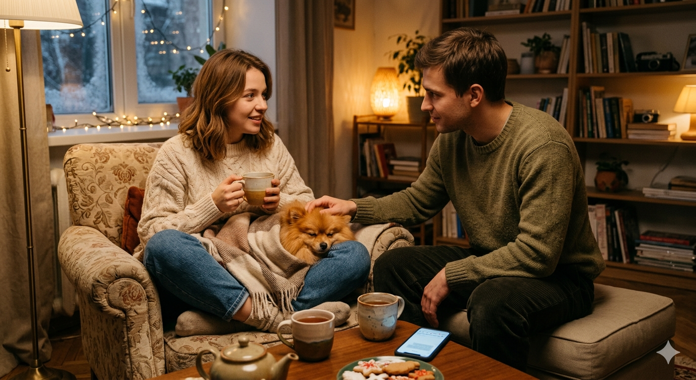 Саша вернулся с двумя кружками горячего чая. Бублик, свернувшись калачиком, заснул, чувствуя, как два самых важных человека в его мире сидят рядом, и между ними царит та самая уютная тишина, которая бывает только тогда, когда сказка наконец-то становится былью.