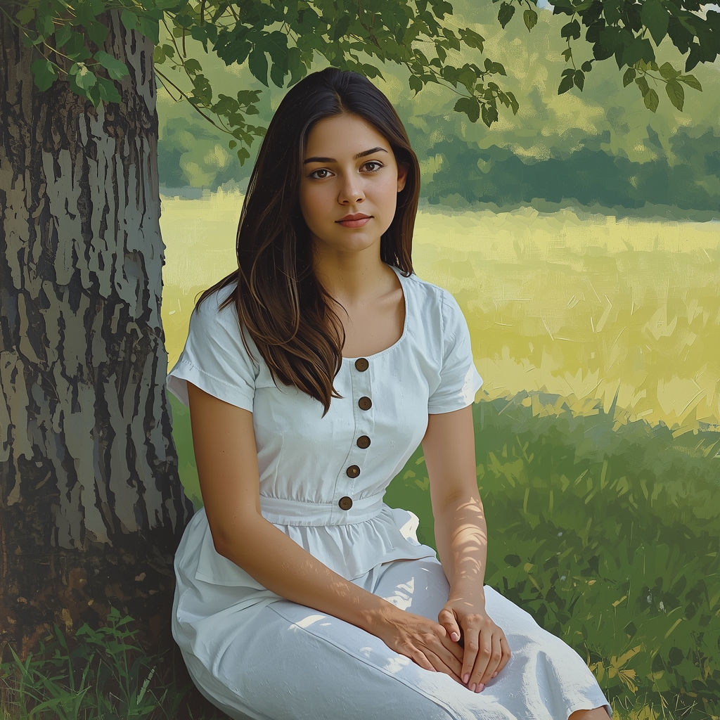 Приехав на следующий год к бабушке, он первым делом пошёл к дубу, надеясь увидеть там Лизавету. Под деревом сидела девушка, поразительно похожа на неё.