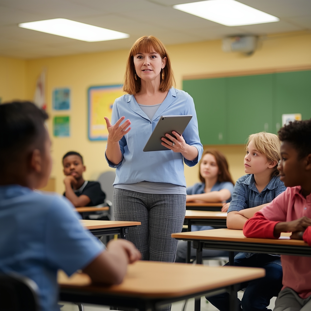 — Так, дети, быстро сели на свои места! Быстро, я сказала. У меня к вам объявление. Сейчас в наш класс зайдёт комиссия из отдела образования, поэтому, ведите себя очень хорошо. Сидите ровно, не вертитесь, и не болтайте! Поняли?