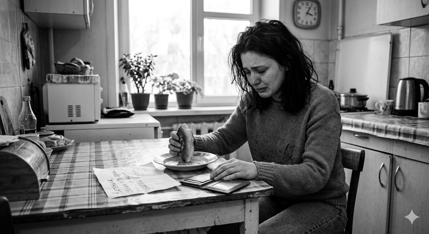 Катя сидела на маминой кухне, ела черствый пирожок и плакала.