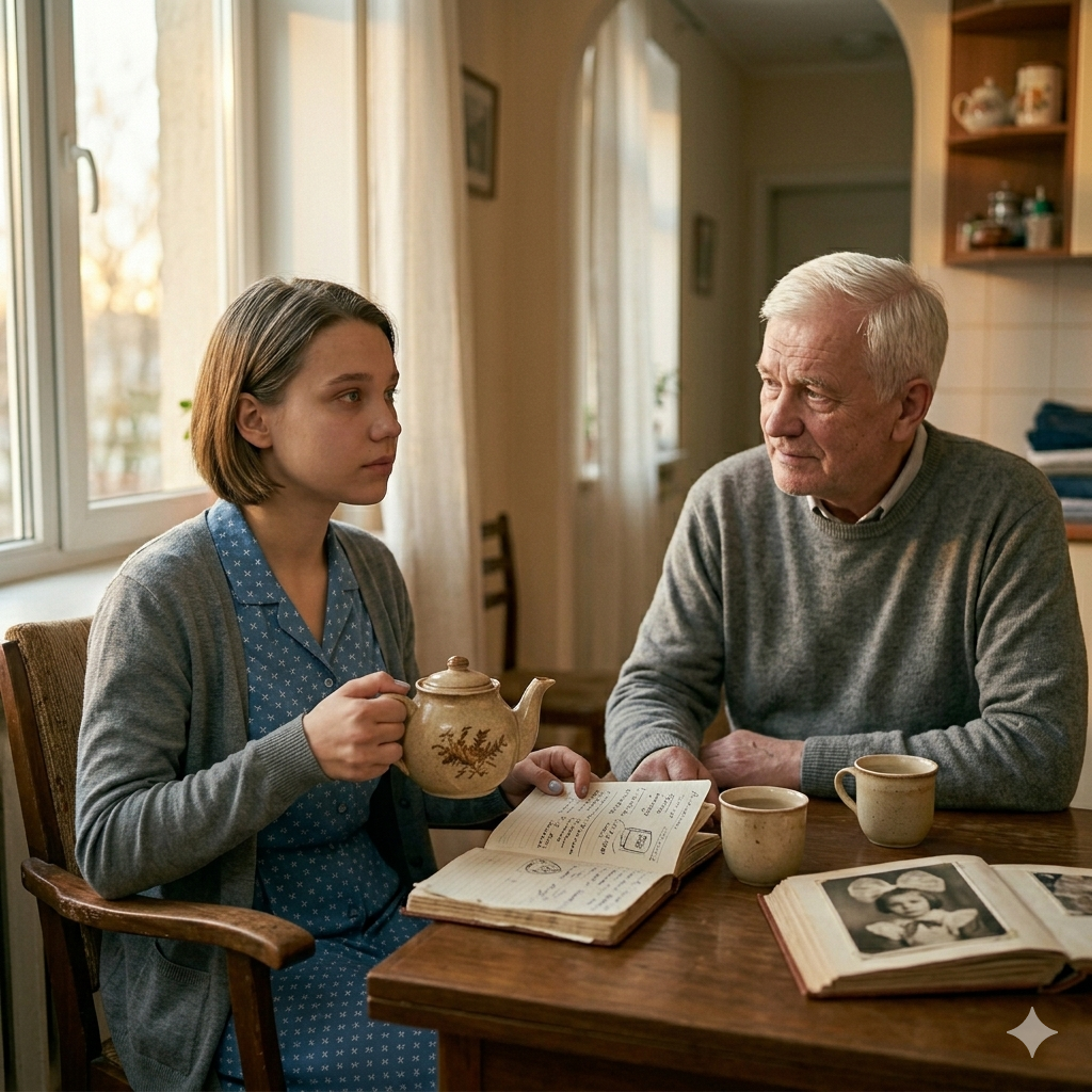 Она берет отца под руку, и они медленно идут к дому. За их спинами — вечерние горы, впереди — теплое окно. И больше никуда не надо. Потому что все уже нашли. Друг друга. И себя.