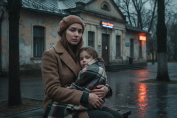 Восьмилетний Артём прильнул к материнской руке, его