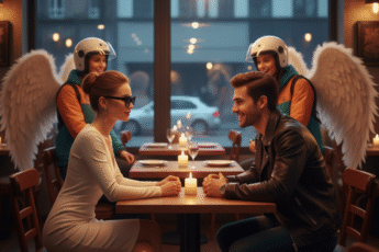 Она, в гордом одиночестве, сидела за столиком полупустого
