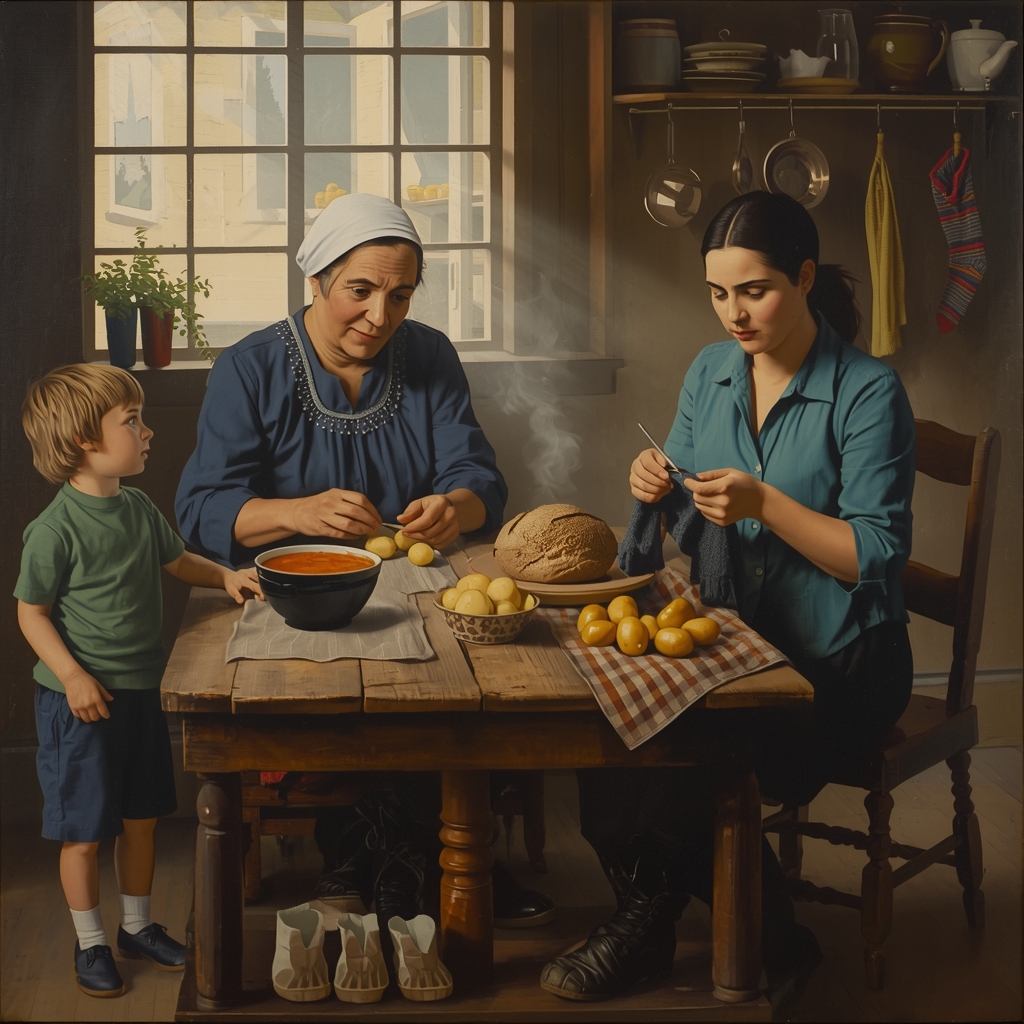В СССР существовал целый алфавит родительской любви — но ни одна буква в нём не произносилась вслух. Любовь передавалась через действия: горячий суп на столе, заштопанные носки, новые сапоги к зиме, купленные в ущерб себе. Никакого «я горжусь тобой». Никакого «ты справишься». Только — сделано, накормлено, обуто.