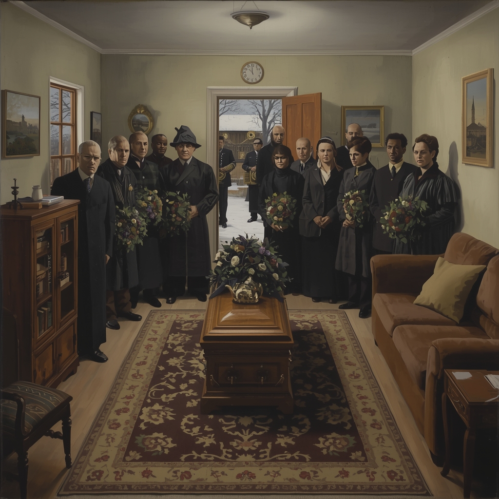 Начиналось всё сразу. В день, когда человек уходил, квартира переставала быть частной. Зеркала завешивали тёмной тканью — старый обычай, доживший до советских времён вопреки всякому атеизму. Столы сдвигали. Мебель убирали к стенам. В центре комнаты появлялся гроб.