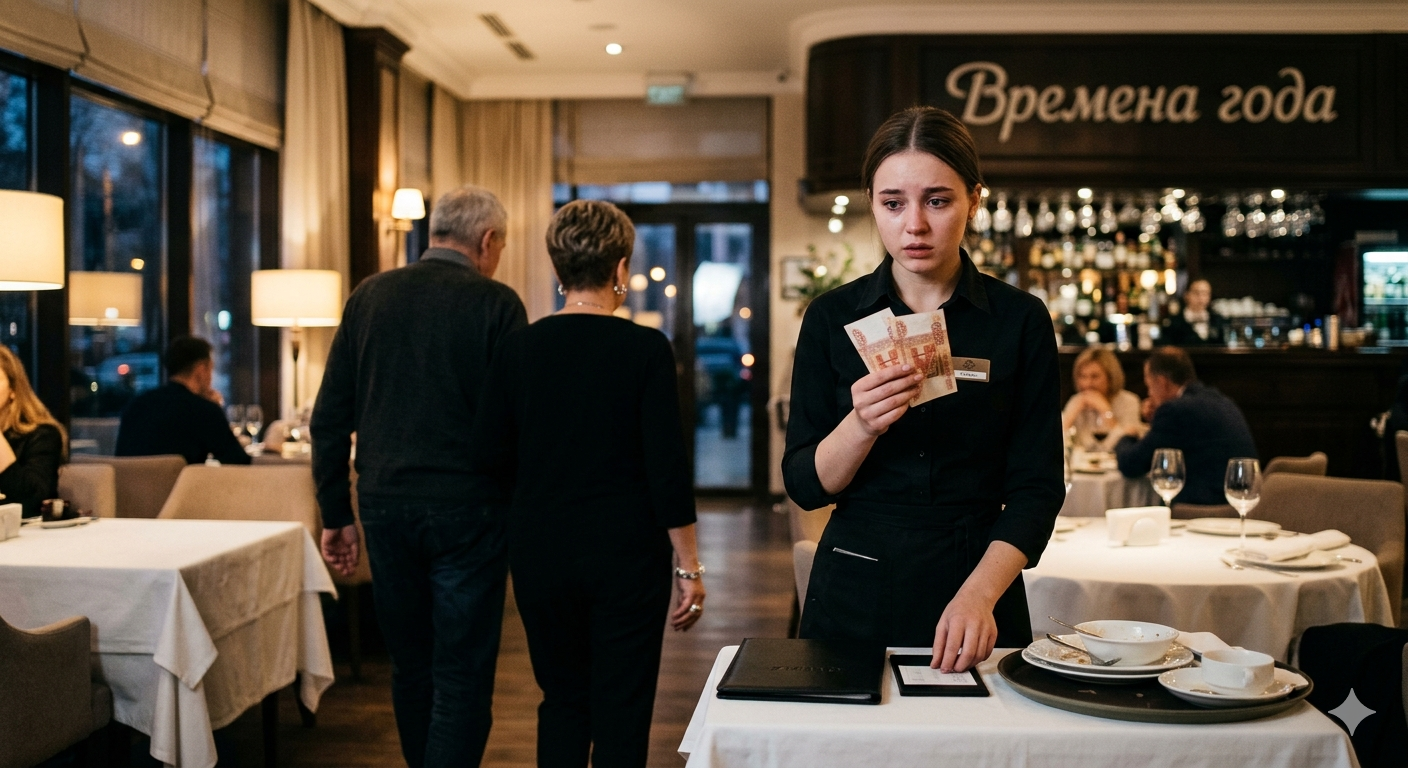 Диана подошла убирать стол. Грязные тарелки, скомканные салфетки, бокалы с остатками вина. Она взяла папку со счётом и увидела под папкой, на белой скатерти, две купюры. Пятитысячные. Десять тысяч рублей. Чаевые.
