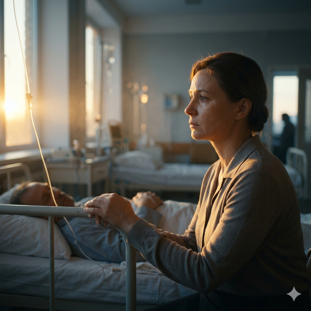 Пришлось перебираться то в кресло на коридоре, то в ногах у мужа подремлю. Первую неделю, пока лежала в больнице к соседу по палате только два человека пришло: две девушки. Одна постарше, примерно ровесница нашего сына, а вторая помоложе — лет 18. Первая повздыхала, посидела и ушла. А вот вторая и пробовала кормить, и памперсы меняла, и постель поправит. И все плакала.