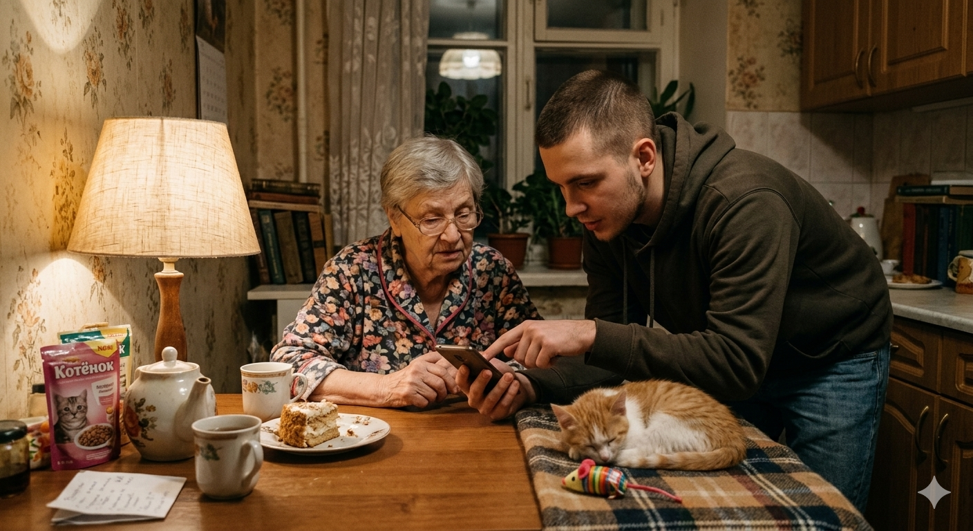 На столе стоял ноутбук с открытой страницей онлайн-банка. Рядом лежали бумажки с паролями, написанные крупным почерком. Дима сел на край стула. Галина Ивановна устроилась напротив, положила телефон на стол.