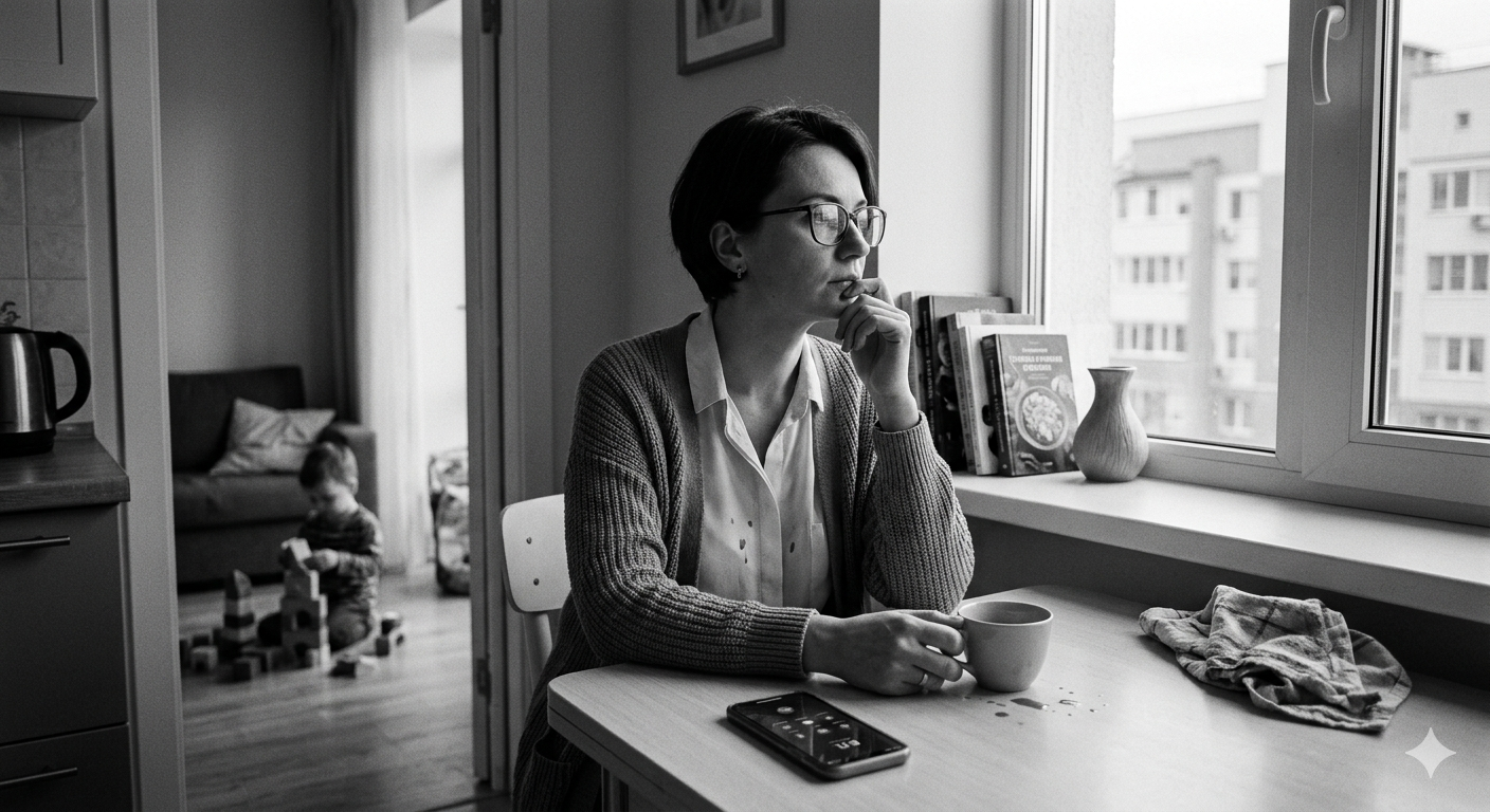 Вечером, после того как Никита уснул, мы сидели на кухне. Серёжа уткнулся в телефон, избегая моего взгляда.